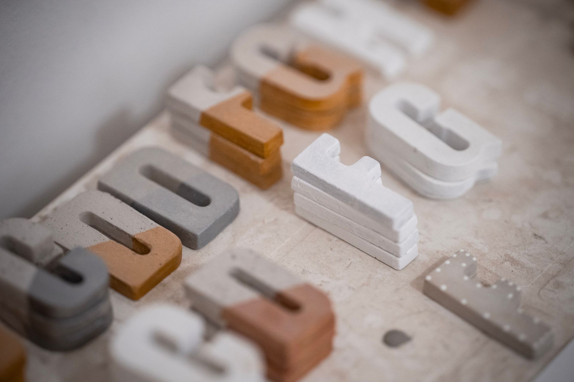Cementini: Holzbilder mit stilvollen Betonbuchstaben